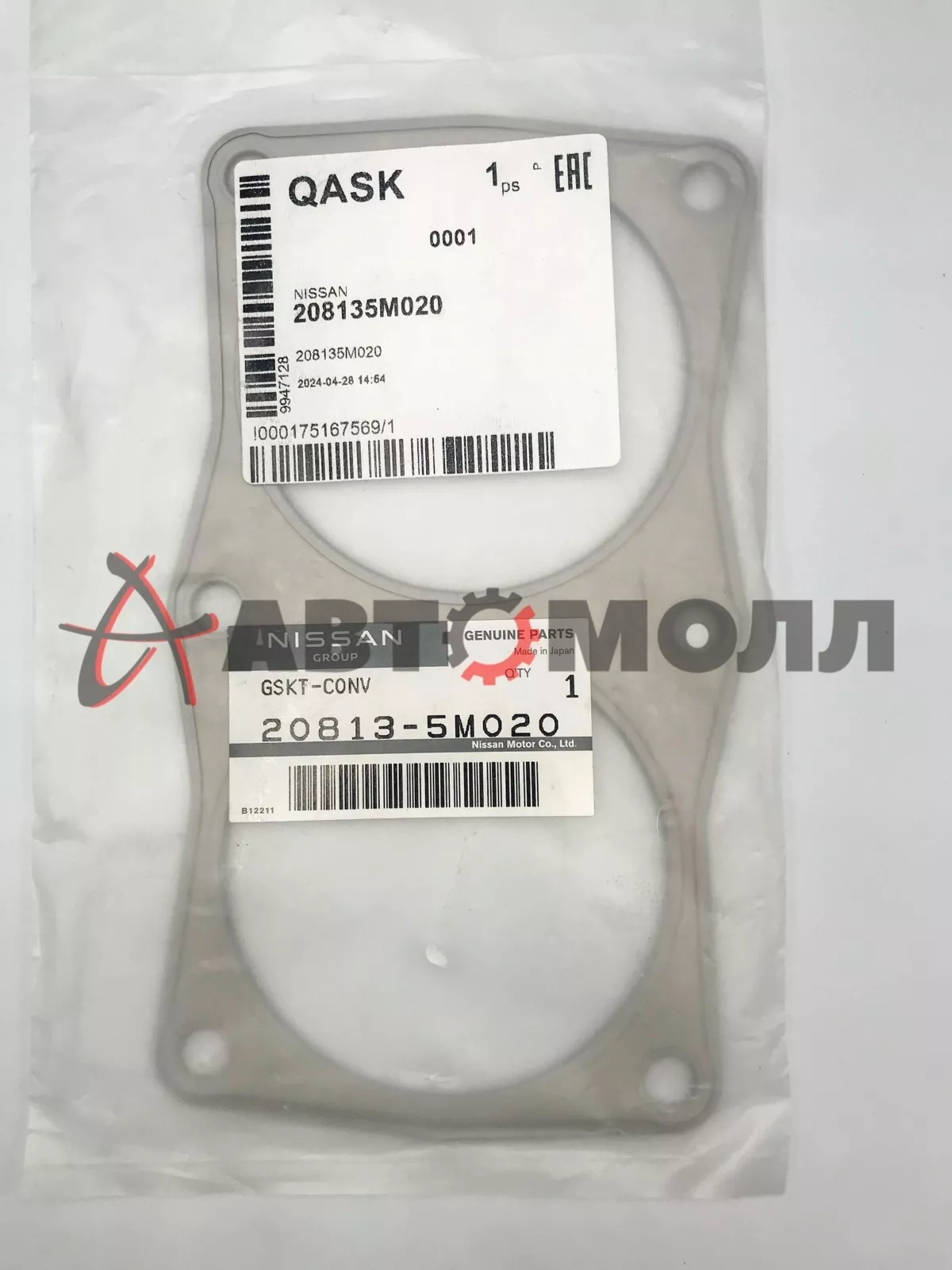 Прокладка уплотнительная глушителя Nissan 208135M020 Primera, P12E Sentra, B15U QG18DE