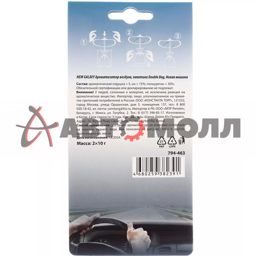 Ароматизатор гелевый пакетики NEW GALAXY 794463 Double Bag 2х10гр. Новая Машина