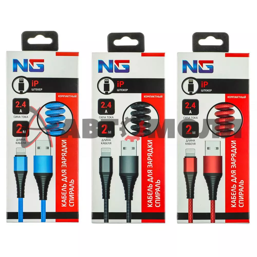 Кабель для зарядки Спираль NG 788041 iP 2м 2.4А быстрая зарядка 3 цвета