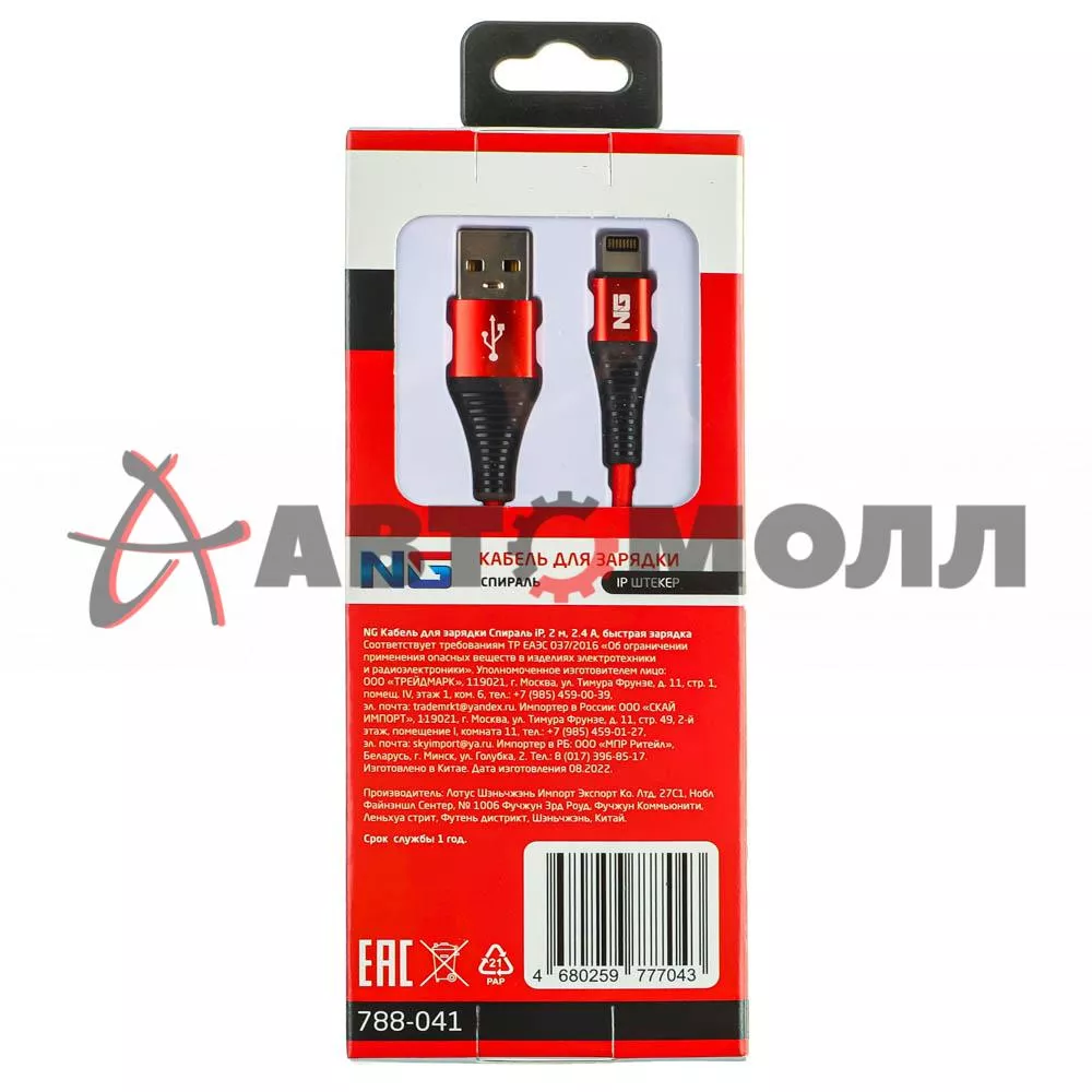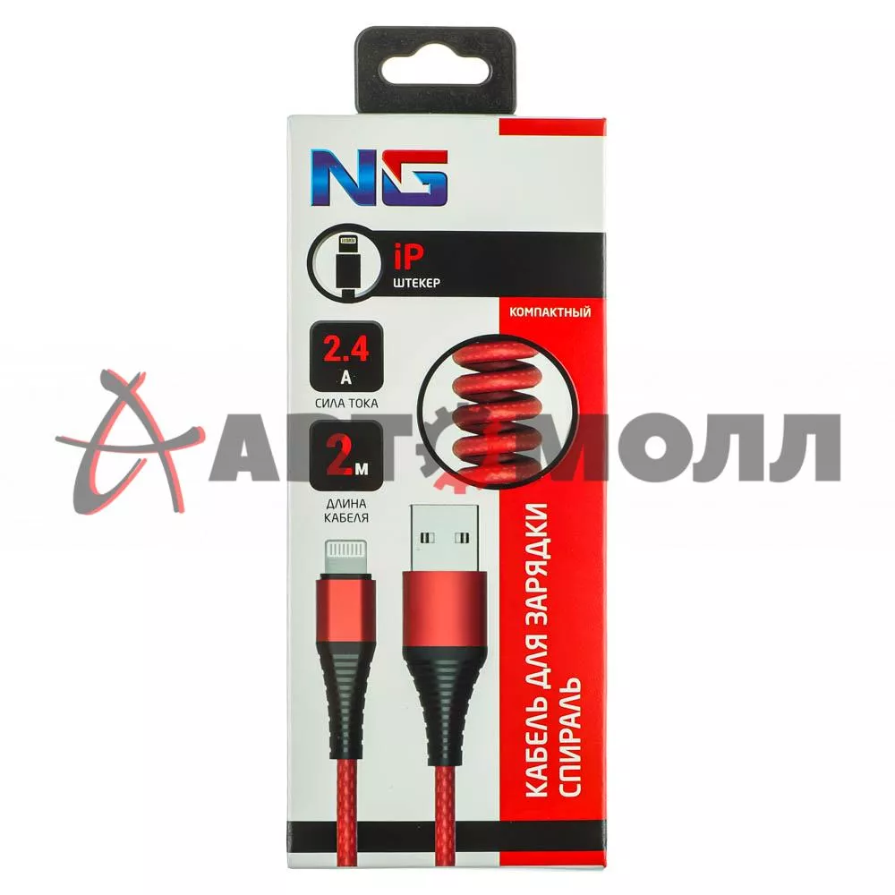 Кабель для зарядки NG «Спираль» со штекером iP и силой тока 2,4 А предназначен для зарядки устройств с соответствующим типом разъема. Поддерживает быструю зарядку. Компактный провод длиной 2 м спирального типа имеет мощную качественную оплетку, устойчивую к перегибам, растрескиванию и заломам. Может использоваться для передачи данных с мобильных устройств на ПК или ноутбук, так как поддерживает функцию синхронизации с компьютером. 3 цвета в ассортименте.