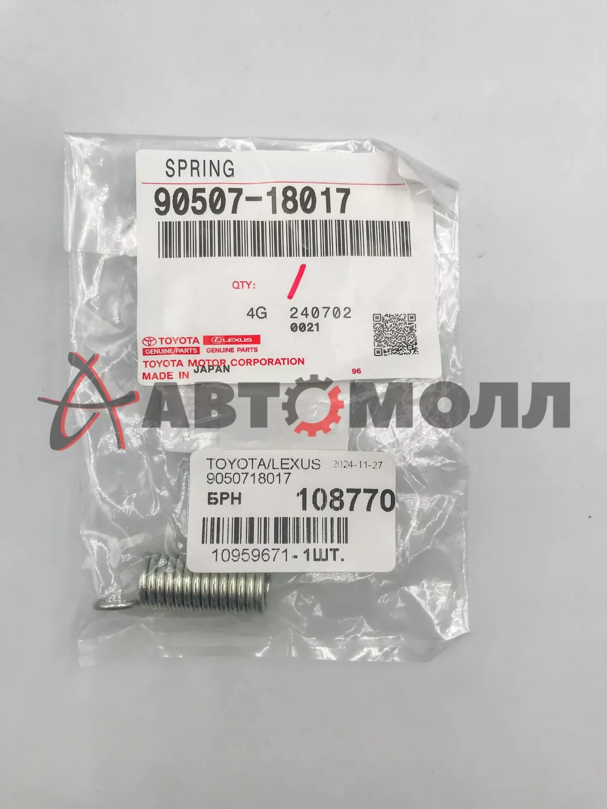 Пружина ролика натяжителя ГРМ Toyota 9050718017 4AFE, 4AL, 4ALC, 5AF, 5AFE, 5AFHE, 2ALC, 4A, 4AC, 4A