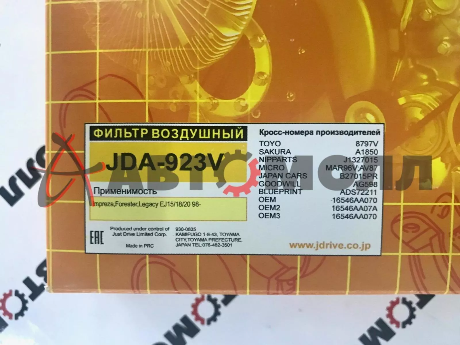 Фильтр воздушный JustDrive JDA923V Subaru Impreza Forester Legacy EJ15 EJ18 EJ20 1998-