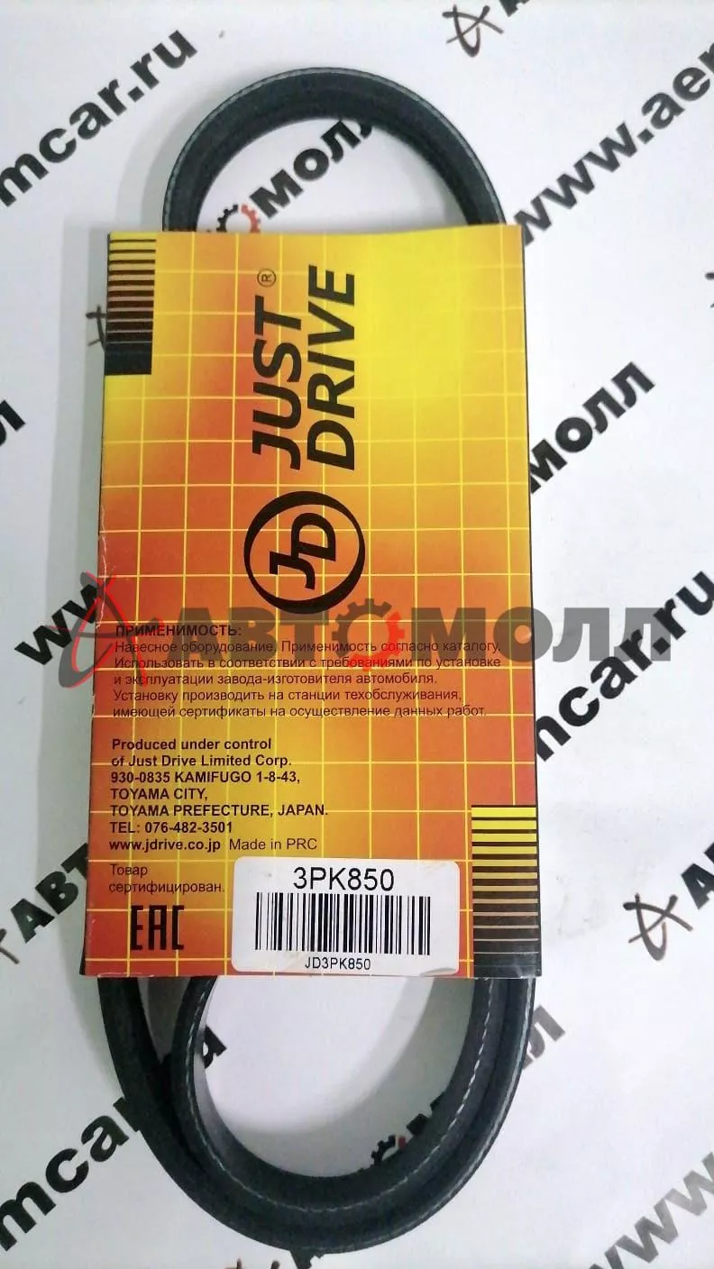Ремень поликлиновой 3PK850 JustDrive Toyota 1NZ 2NZ-FE Corolla Funcargo 2000- (PS)