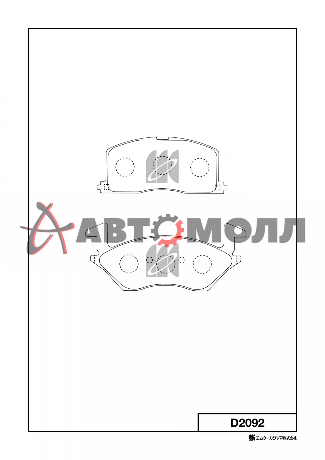Колодки тормозные передние Kashiyama D2092 Starlet EP82(-GT)/NP80 89-96 EP91/NP90 96 NP1051 PF1256
