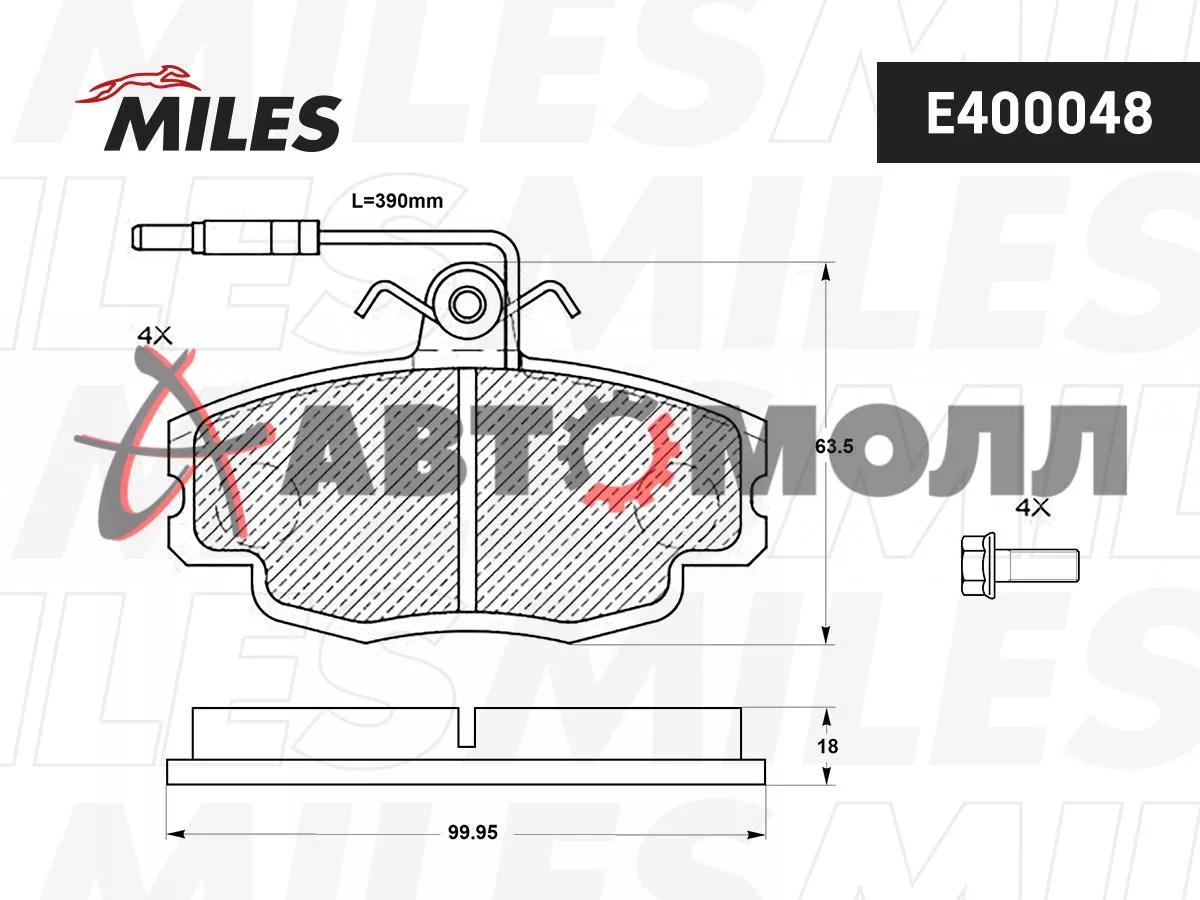 Колодки тормозные передние Miles E400048 с датчиком RE Logan / Box / MCV, Clio I (B/C57_, 5/357_) /