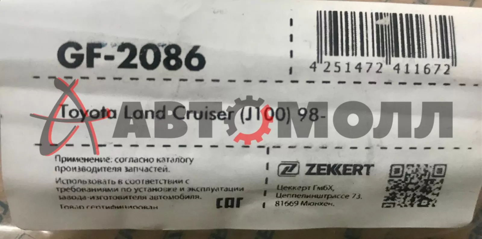 Амортизатор газовый капота Zekkert GF2086 Toyota Land Cruiser (J100) 98- за 1шт 460мм