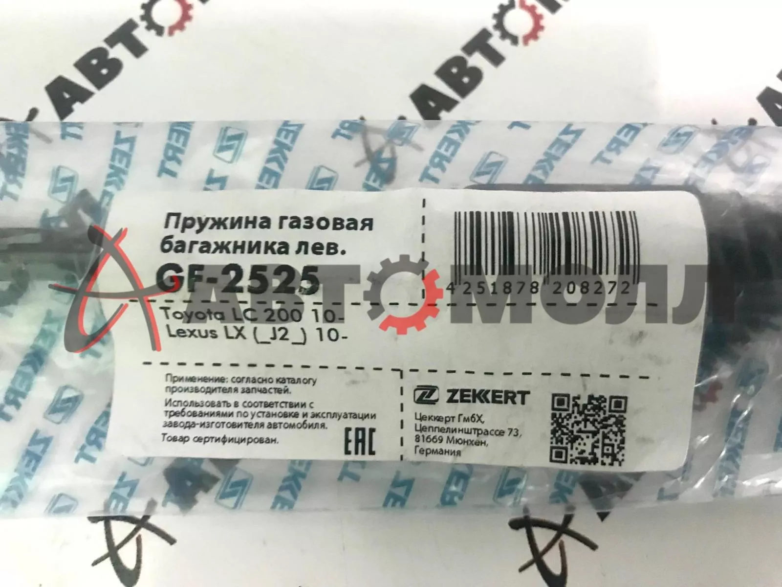 Амортизатор газовый задней двери Zekkert GF2525 Toyota LC 200 10- Lexus LX (J200) 10- левый за 1шт
