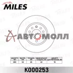 Диск тормозной передний Miles K000253 OPEL ASTRA G/H 98-09/MERIVA 03-/ZAFIRA 99-