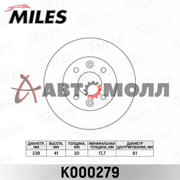 Диск тормозной передний Miles K000279 NISSAN KUBISTAR/RENAULT CLIO 91-/KANGOO 97-/MEGANE 96-99