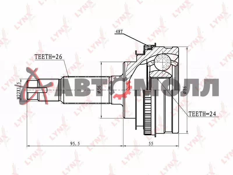 Шрус наружный LYNXauto CO7509A TO Corona -96,Camry 90-,Corolla -98,RAV4 -00,Nadia 98
