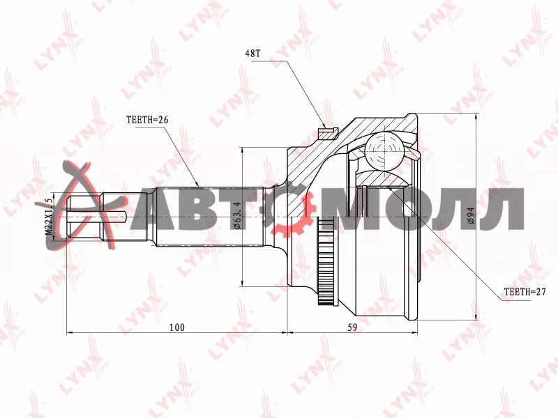 Шрус наружный LYNXauto CO7522A 26/27 ABS, TOYOTA CAMRY ACV4# 01-09 / HARRIER ACU3# / MCU35 / IPSUM A
