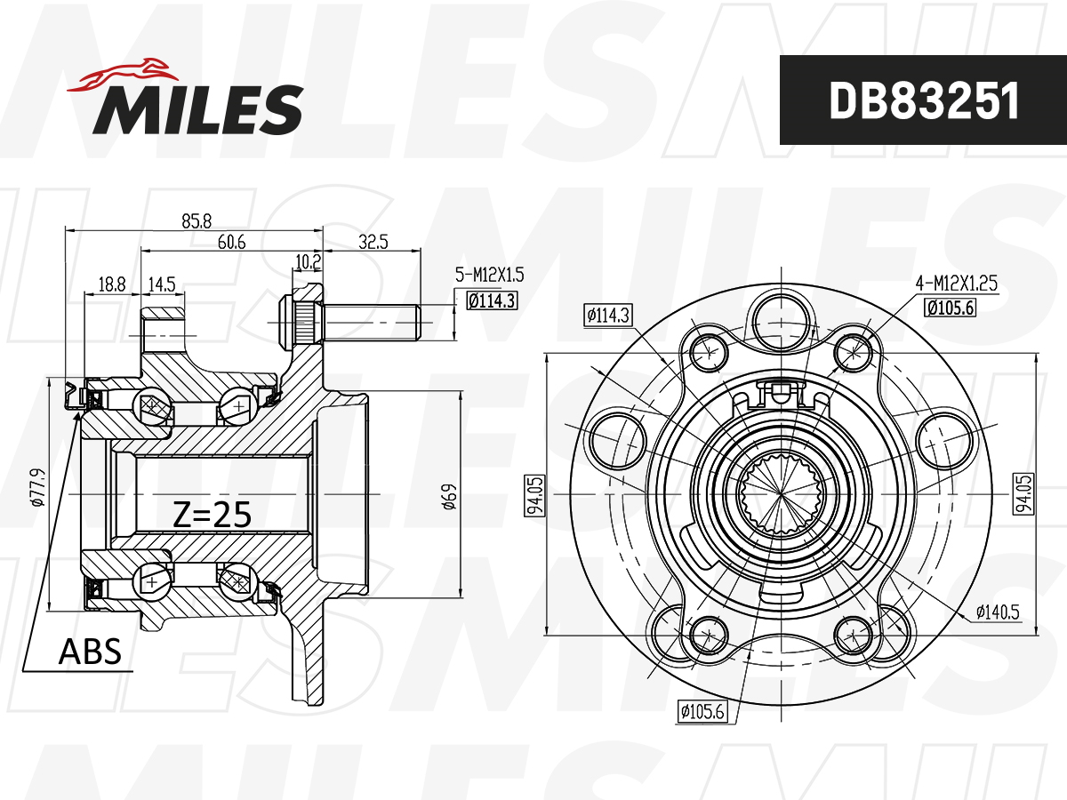 Ступица задняя Miles DB83251 Mitsubishi ASX Outlander 4WD 2010-