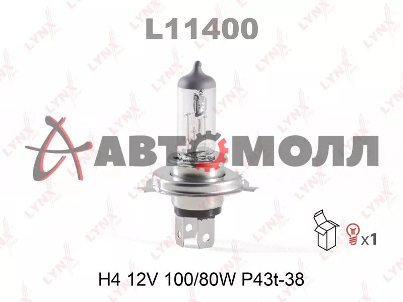 Лампа головного освещения H4 12V 100/80W LynxAuto P43t-38 L11400
